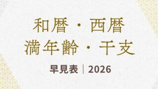 2026年は令和8年。和暦・西暦・満年齢・干支(十二支)を1909年(明治42年)まで元号別に一覧でまとめました。年齢確認や書類作成、長寿祝いの確認にも便利な保存版早見表です。